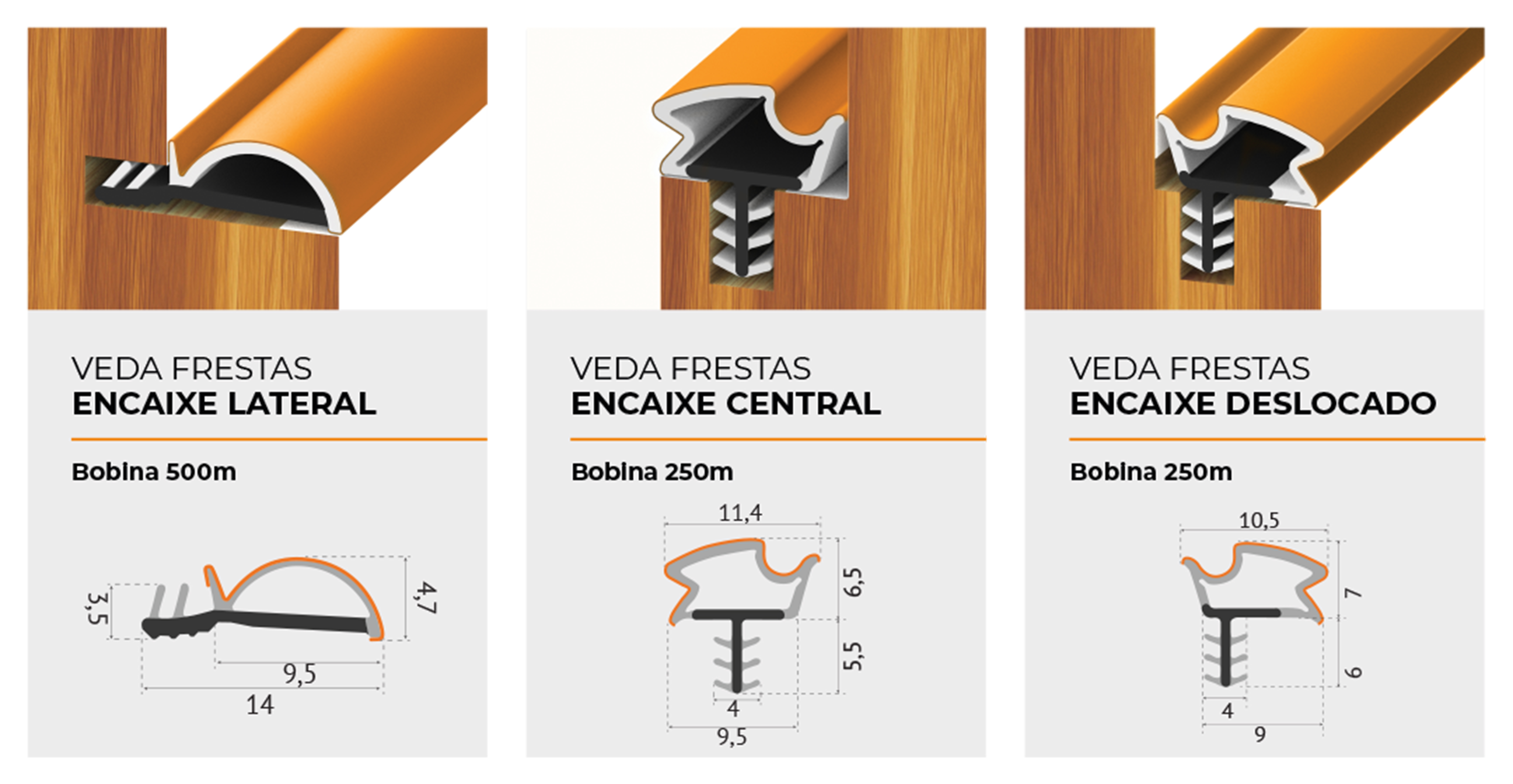 O Veda Frestas Encaixe é um perfil para vedação de portas de madeira com canal ou friso para encaixe. Ao todo são três modelos, em 7 cores diferentes, que oferecem vedação contribuindo para o isolamento acústico e térmico, controle da passagem de ar e sujeira.